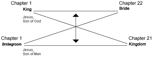 | 20:17 “Jesus said to her, ‘Do not hold to me yet, for I have not yet ascended to My Father…to My God and your God.'” | 21: 2 “Then I, John, saw the holy city, New Jerusalem, descending out of heaven from God, prepared as a bride adorned for her husband…” |