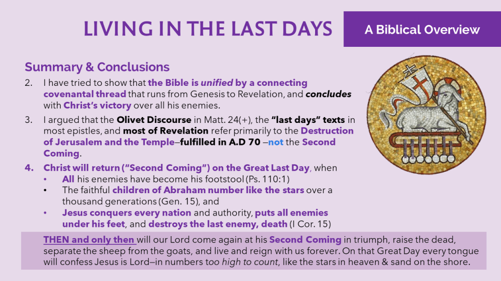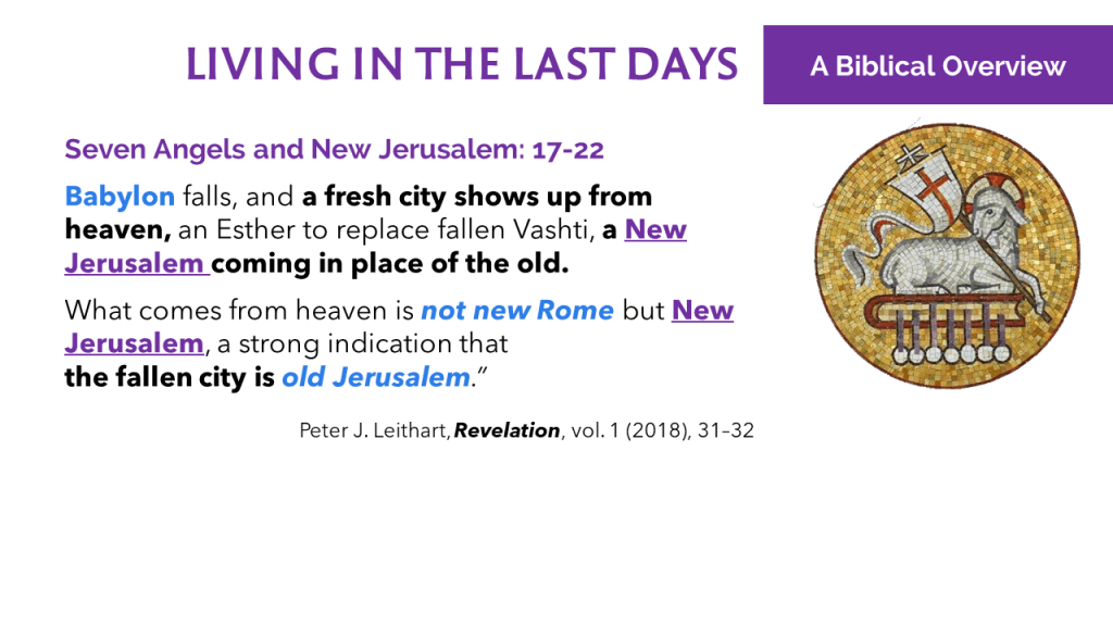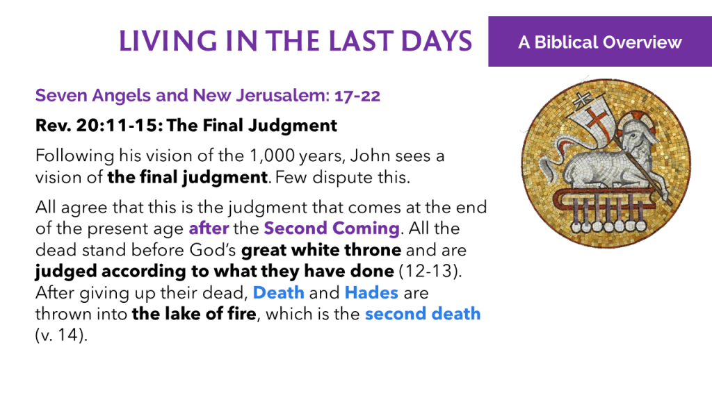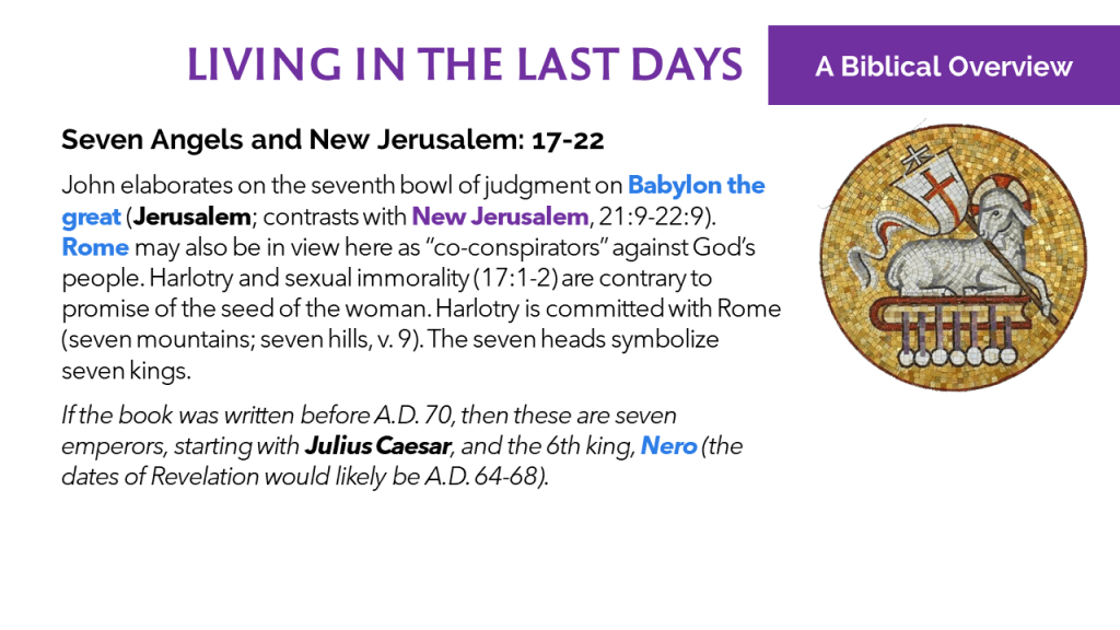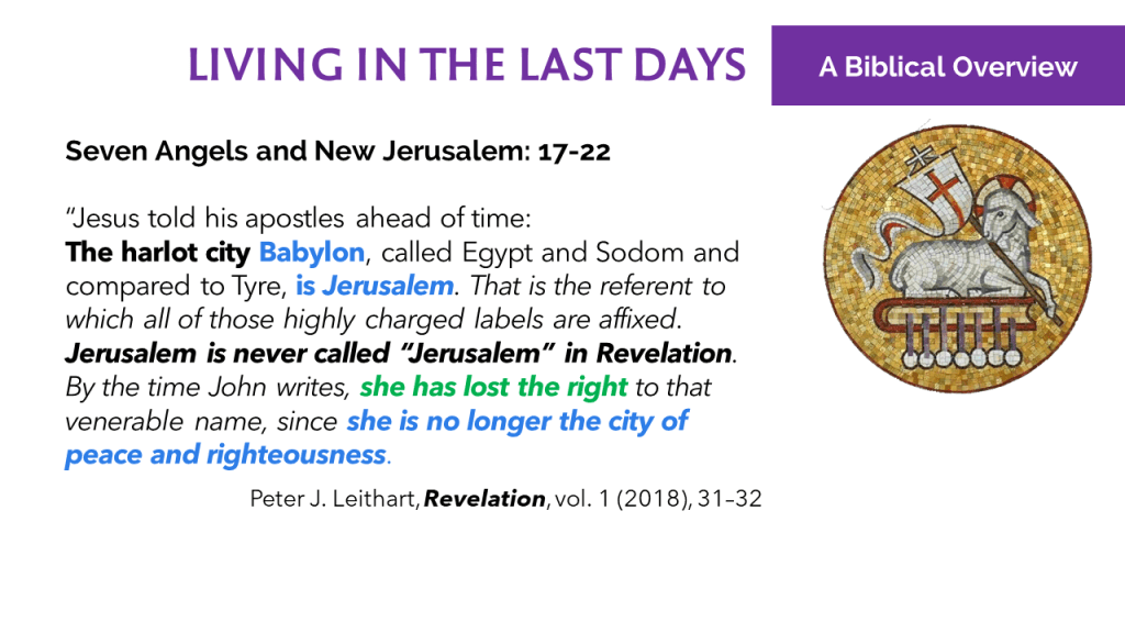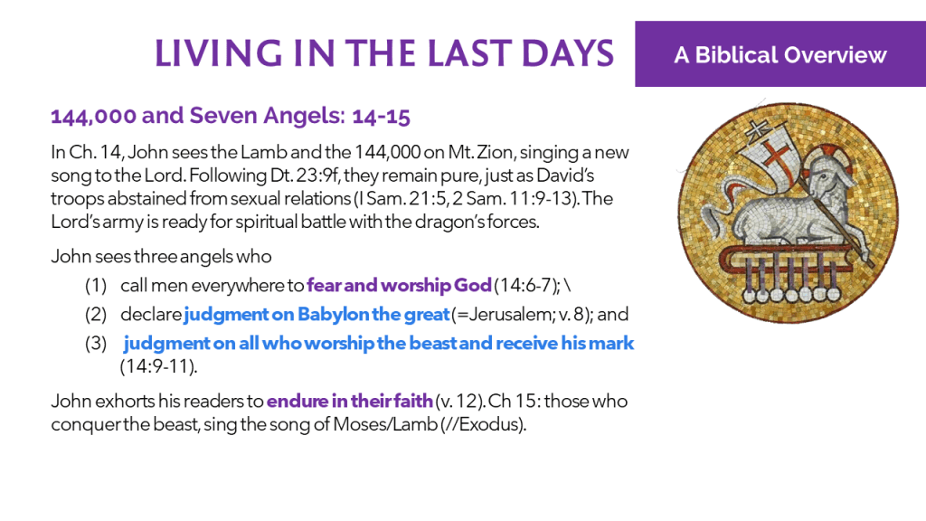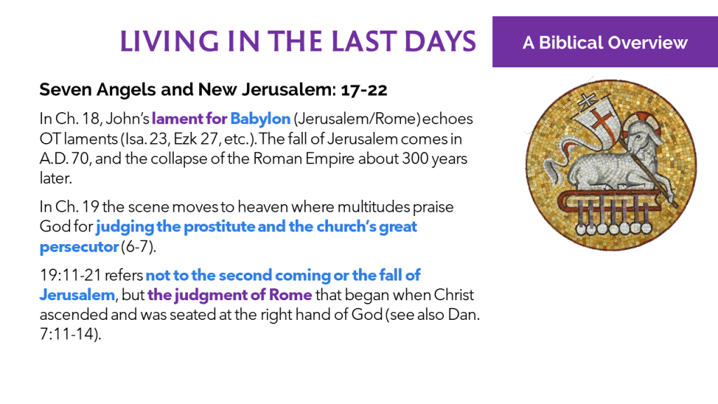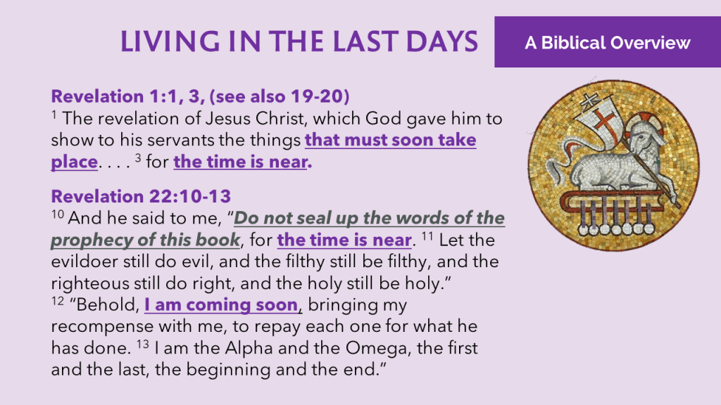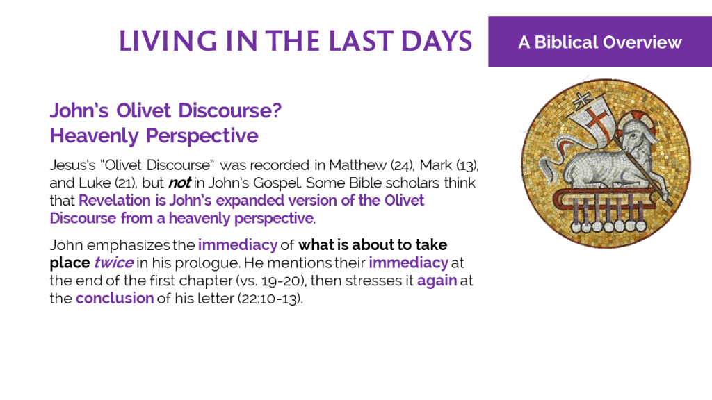 | Lesson 4 | 9.24 Prophecies of Isaiah, Daniel & Ezekiel | Lesson 5 | 10.1 Olivet Discourse (Mt. 24, Mk. 13, Lk. 21) | Lesson 6 | 10.8 Review, Questions, & Discussion |