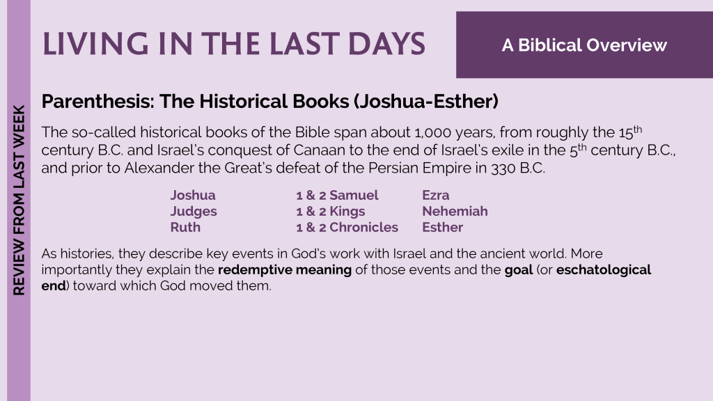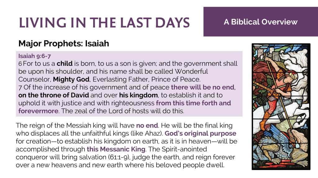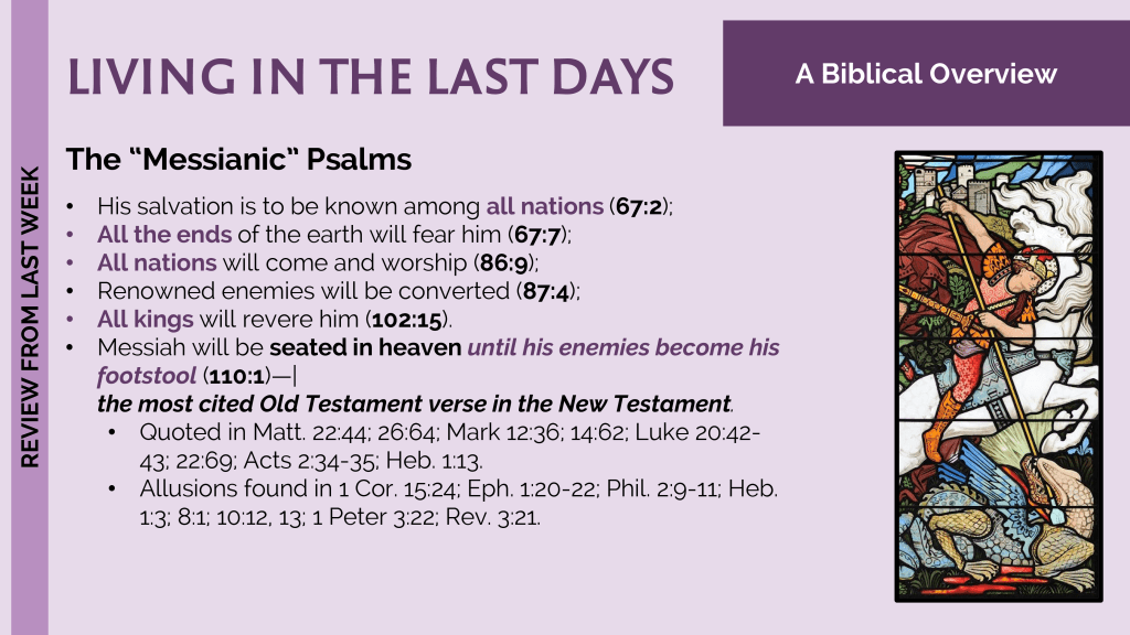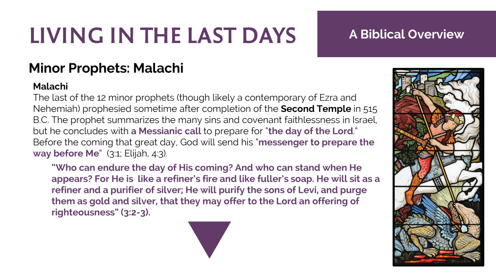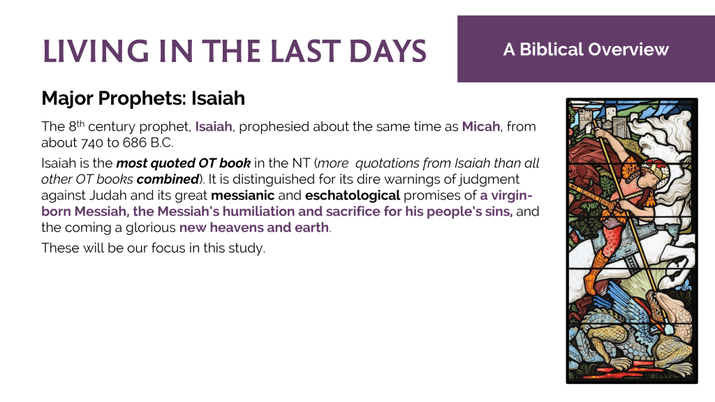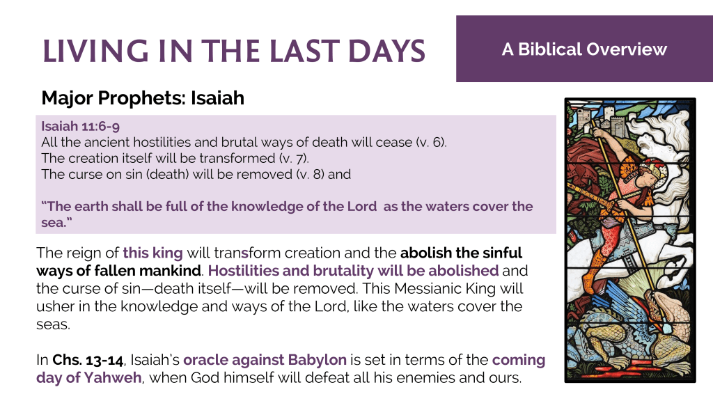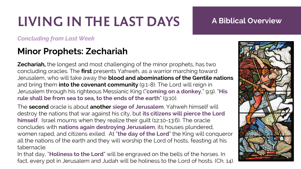 | Lesson 4 | 9.24 Prophecies of Isaiah, Daniel & Ezekiel | Lesson 5 | 10.1 Olivet Discourse (Mt. 24, Mk. 13, Lk. 21) | Lesson 6 | 10.8 Review, Questions, & Discussion |