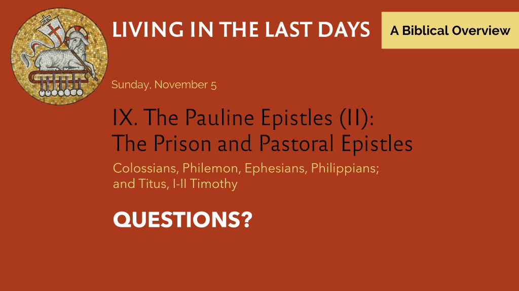 The Pauline Epistles (II): The Prison and Pastoral Epistles